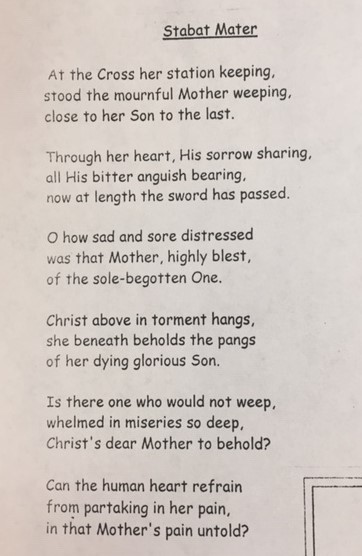 3) For poetry, recite the Stabat Mater, adding a new line every day.