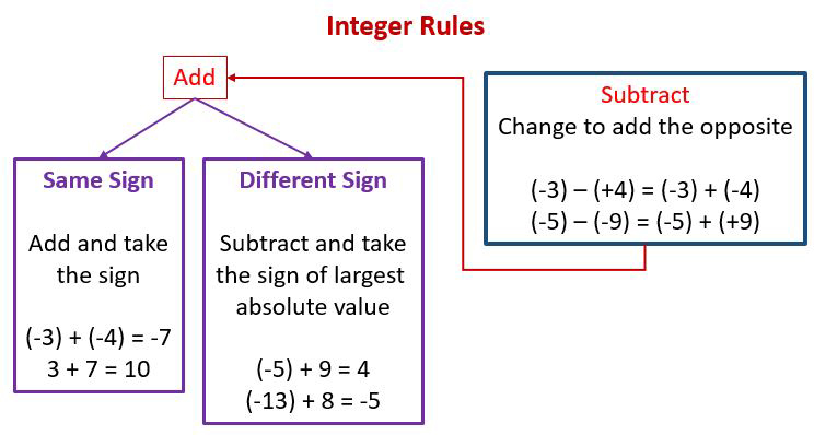 Remember when we learned the rules for adding integers (positive and negative whole numbers)? You can refresh your memory by checking the 6th Math Archive page, if you'd like.